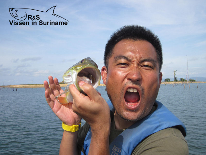 Tetsuya Akita woont in Japan. 2 weken heeft hij uitgetrokken voor zijn vakantie in Zuid Amerika. 5 Dagen zal hij in Suriname verblijven. En er moet gevist worden. De keus valt op 2x een dagtrip. Vandaag gaan we naar het Stuwmeer. Tetsuya heeft geen idée wat voor vissoorten we gaan vangen. Als de eerste Tukunari binnenkomt is hij onder de indruk. Mooie aanbeet, mooie dril en een nog mooiere vis. Het wordt een leuke dag, genoeg aanbeten, helaas weet hij er slechts 2 te landen. Maar ook van de lossers, vaak na een “spectaculaire dril” werd genoten.