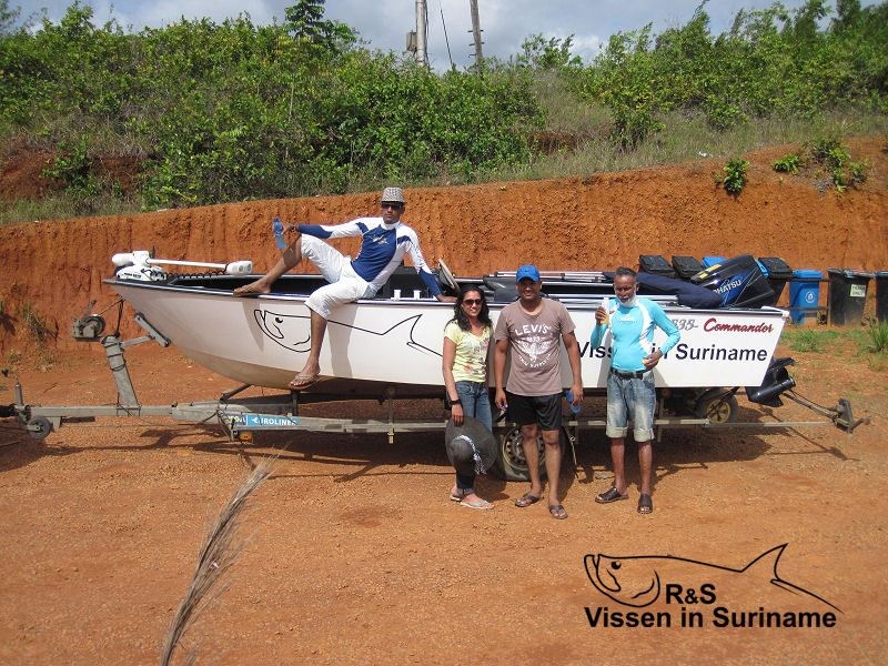 Al Ramphal is weer in Suriname. Ruim van te voren laat hij weten dat hij wil gaan vissen. Goede vrienden Lorenzo New en Henk druiventak gaan mee. Lorenzo werkt bij de Amerikaanse ambassade en is nog 6 maanden gestationeert in Suriname. Henk woont al een jaar of 8 in Suriname en is directeur van Hedi Infra (www.hediinfra.net) Voor Al en Lorenzo is het de 3de keer dat ze meegaan met “R&S Vissen In Suriname”. Henk heeft al een aantal jaren niet gevist. Eenmaal bij het Stuwmeer blijkt het water nog verder gezakt te zijn. Dit ondanks dat het in de stad bijna dagelijks regent. Zo te zien regent het niet (genoeg) in het binnenland. Achteraf blijkt het een taaie visdag te zijn. Bij het eerste eiland hebben we al een aanbeet, echter deze wordt niet verzilvert. Henk is de minst ervaren visser maar is wel de eerste die een vis land. Een Black Piranha. Er volgen een aantal missers en dan is het Lorenzo die een Tukunari weet te landen. Helaas blijft het voor Al bij een aantal missers.