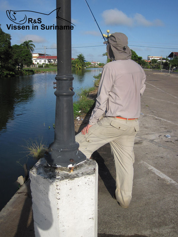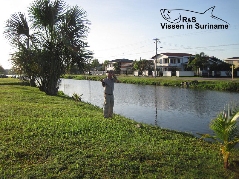 Vandaag is de 2de dag dat Gertjan Borghuis beschikbaar heeft voor het vissen. En natuurlijk wil hij vliegvissen, en juist dat maakt de mogelijkheden rond Paramaribo beperkt. De Suriname- en Commewijne-rivier is vissen in troeble water.. Als alternatief stel ik voor op de kanalen van Paramaribo op Tarpon te gaan vissen. Eenmaal bij het water is er genoeg beweging. Helaas niet van Tarpon. We geven onze ogen goed de kost. Verschillende spots doen we aan. We spreken lokale hengelaars.. een aantal van hen staat gericht te hengelen op tarpon. Het is slap.. in totaal hebben we 2 visuals. Helaas geen vis. Het is jammer dat het “tarponvijver” gesloten is. Tot 2 jaar geleden heb ik daar leuk gevangen. Van Gertjan heb ik nog een aantal tips en tricks gekregen. Deze ochtend heb IK aan mijn techniek kunnen werken. Helemaal top Gertjan.
