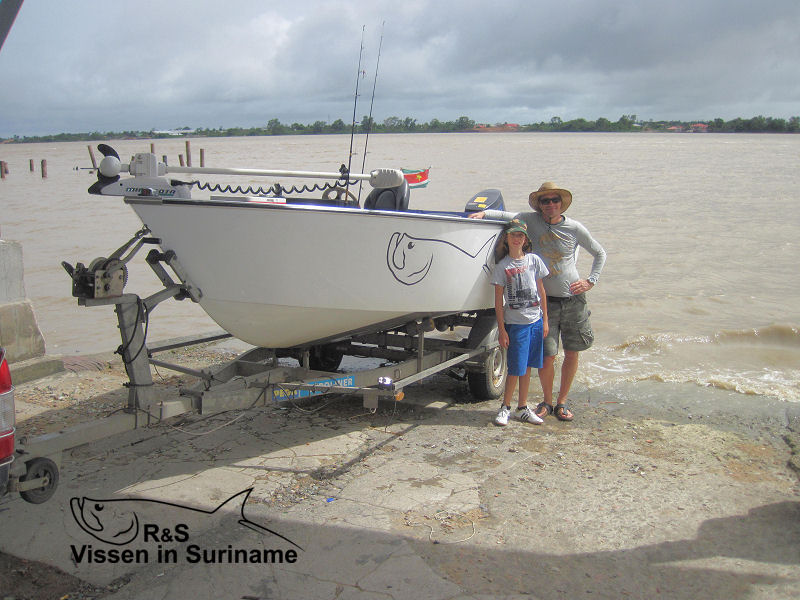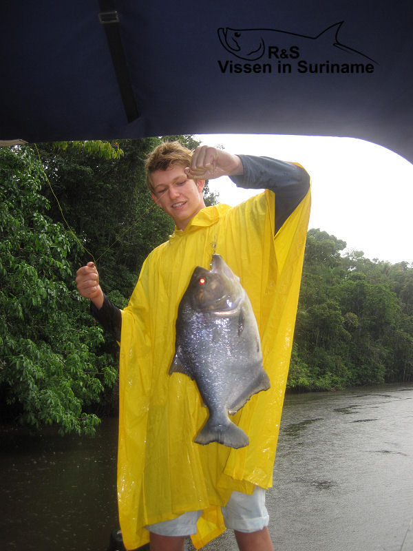Er is er één jarig en.... hij viert dat in SURINAME. Jerro is 10 geworden. Hij is helemaal gek van vissen. In Nederland heeft hij al snoeken van een meter gevangen. En nu hij wil graag een anjumara (wolfsvis, Hoplias Aimara) vangen. Helaas het is regentijd. OK, dan gaan we voor de roggen en meervallen op de monding. Papa Jeroen Goinga doet liever bruidjes fotograferen maar vergezeld graag zijn zoon tijdens de vistrip. Het is perslot van rekening hun verjaarsdag kado aan Jerro.
