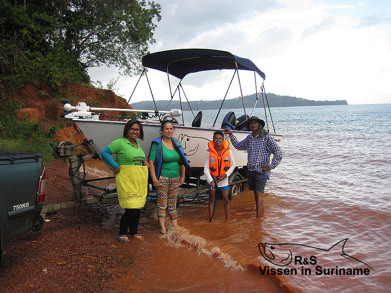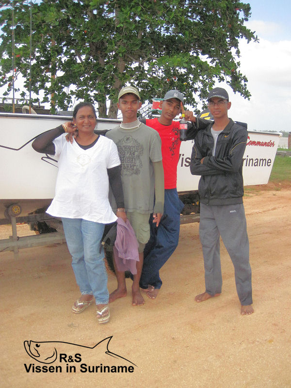 Op stap met de familie. Zwager Guus wilt graag grote vissen vangen. 2/3 dagen Coppename/ Wayambo vindt hij te lang. De monding Commewijne/ Suriname rivier heeft hij al een aantal keren gedaan. Nee, nu wilt hij op de Surinamerivier vissen. Hoogste vangst garantie hebben we op de Monding.. maar Guus hoeft geen vangstgarantie. Nicht Sita, neefje Shiva en Zwager Lané gaan mee. Het wordt een gezellige dag op de boot. De zwagers zijn duidelijk onder de indruk van de boot. En we zetten koers richting Domburg. Over de vangsten kunnen we kort zijn.. Ondanks het aandoen van verschillende locaties. Het inzetten van verschillende aassoorten waaronder de, bij lokalen geliefde aassoort, "vogelingewanden", lukt het niet om de vis te verleiden. Voor de Kubi werden levende garnalen ingezet, helaas gaven de Kubi niet thuis.