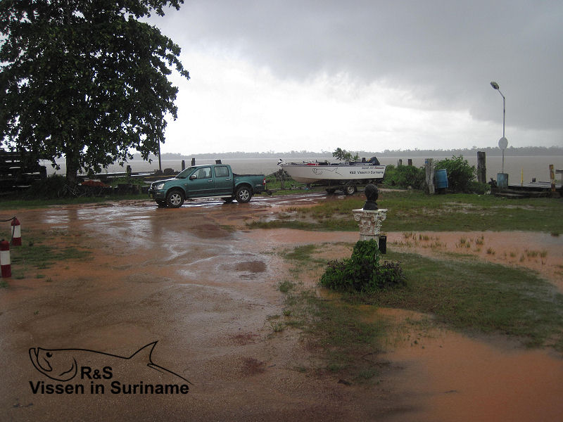 Het is 08.00 en ik bel de marketing manager van Krasnapolsky/ B&D. Na uitleg over de situatie mag ik proberen om te traileren op het Adventure center. Het probleem is alleen dat ze geen trailerhelling hebben, het moet dus gewoon vanaf “het strand”. Al met al is het gelukt om deze visdag te redden. We hebben gevist op de Surinamerivier. Hr Blonsky heeft een aantal flinke piranha’s gevangen, helaas werden 2 aanbeten van Tukunari gemist. Eenmaal terug in de stad begreep ik dat de Roadblock om 17.00 is opgeheven. http://www.starnieuws.com/index.php/welcome/index/nieuwsitem/23261