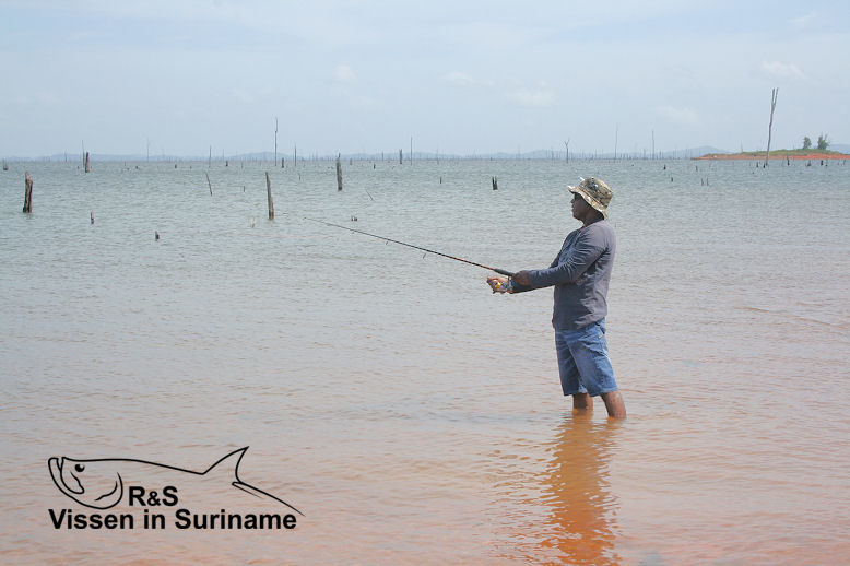 Fly-fishing in Suriname. Ruim 2 maanden van te voren mailt Gertjan Borghuis dat hij naar Suriname komt. Hij moet in de avonden en in het weekend werken, maar vindt toch nog 2 dagen om te vissen. En hij is fervent vliegvisser... OK.. Ik heb wel een beginnerssetje voor het vliegvissen maar dat is ook alles. Heb geen materiaal en een heel klein beetje ervaring. Voor Gertjan geen probleem. Hij heeft zijn eigen materiaal mee. De gids moet hem slechts brengen daar waar de vis zit. 19 Oktober wordt geprikt voor een dag op het stuwmeer. Een week van te voren mailt Mark Shepherd. Hij is weer in Suriname voor werk en wilt graag een dag gaan vissen. Ook Mark is een fervent vliegvisser. Jammer genoeg kon hij dit keer zijn visspullen niet meenemen. Hij maakt graag gebruik van mijn hengels. En zo kan ik beide heren meenemen op 1 trip. Alles staat klaar en dan belt Pieter de Bruijn. Ja Raymond, ik ben weer in Suriname. Heb je toevallig dit weekend een trip naar het meer? Ook Pieter is een fervent vliegvisser, hij heeft zijn spullen bij zich en heeft al eens op het meer gevist. Na overleg met de andere heren sluit Pieter zich aan voor de 19de. Een gelukje voor mij, ze verblijven alle 3 in Torarica.